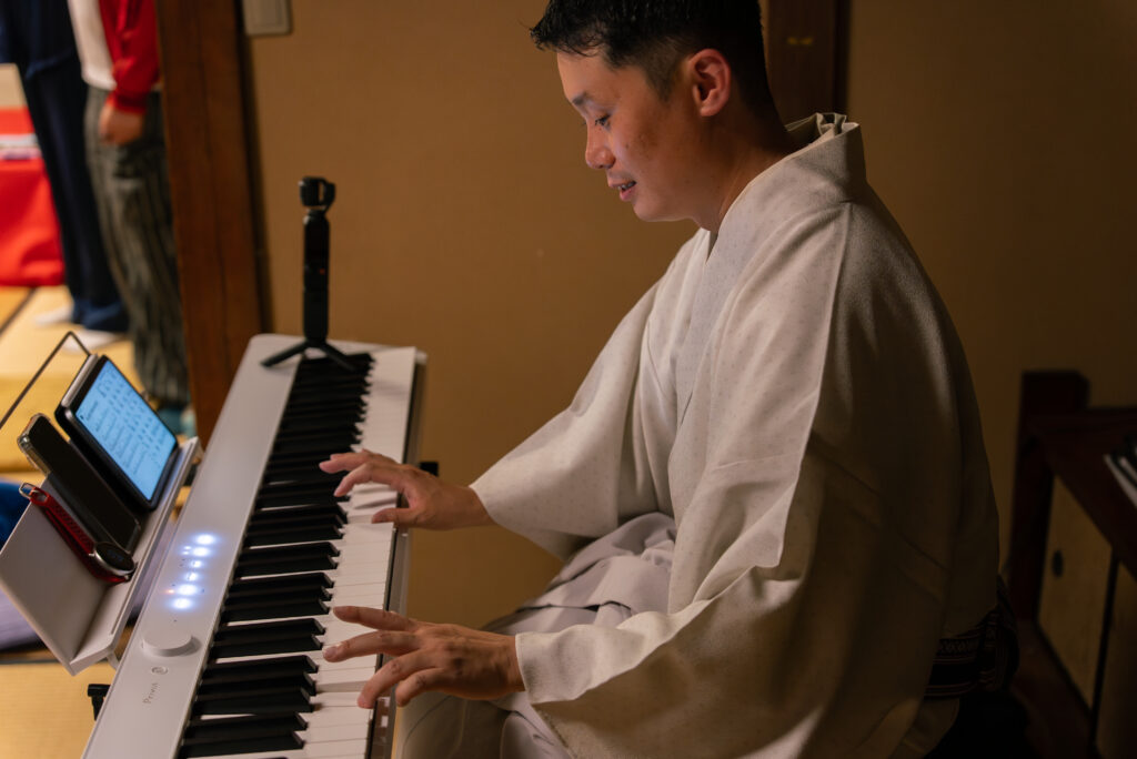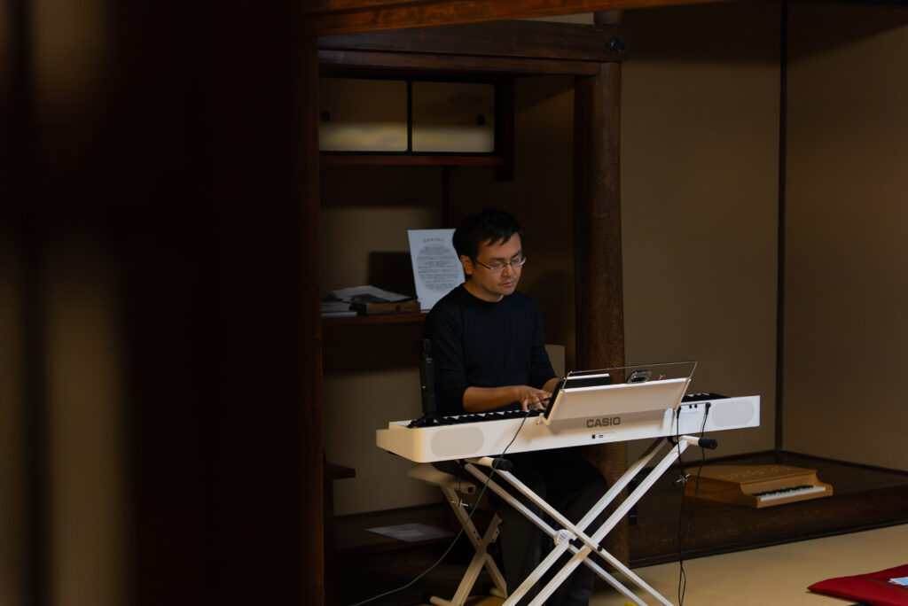 開場時刻。渡邉晃のジャズピアノで場があたたまりはじめます。