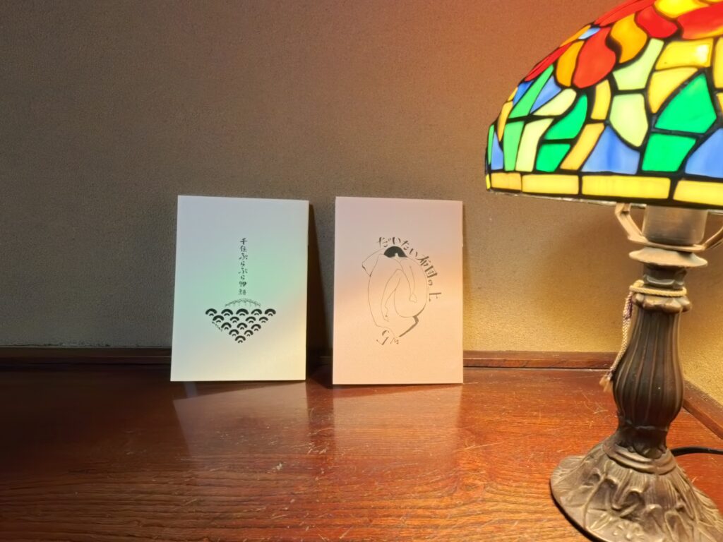 和紙に滲む墨がいい感じ。ぼーっと散歩した時間が溶けていった感じがそこからも感じられる。