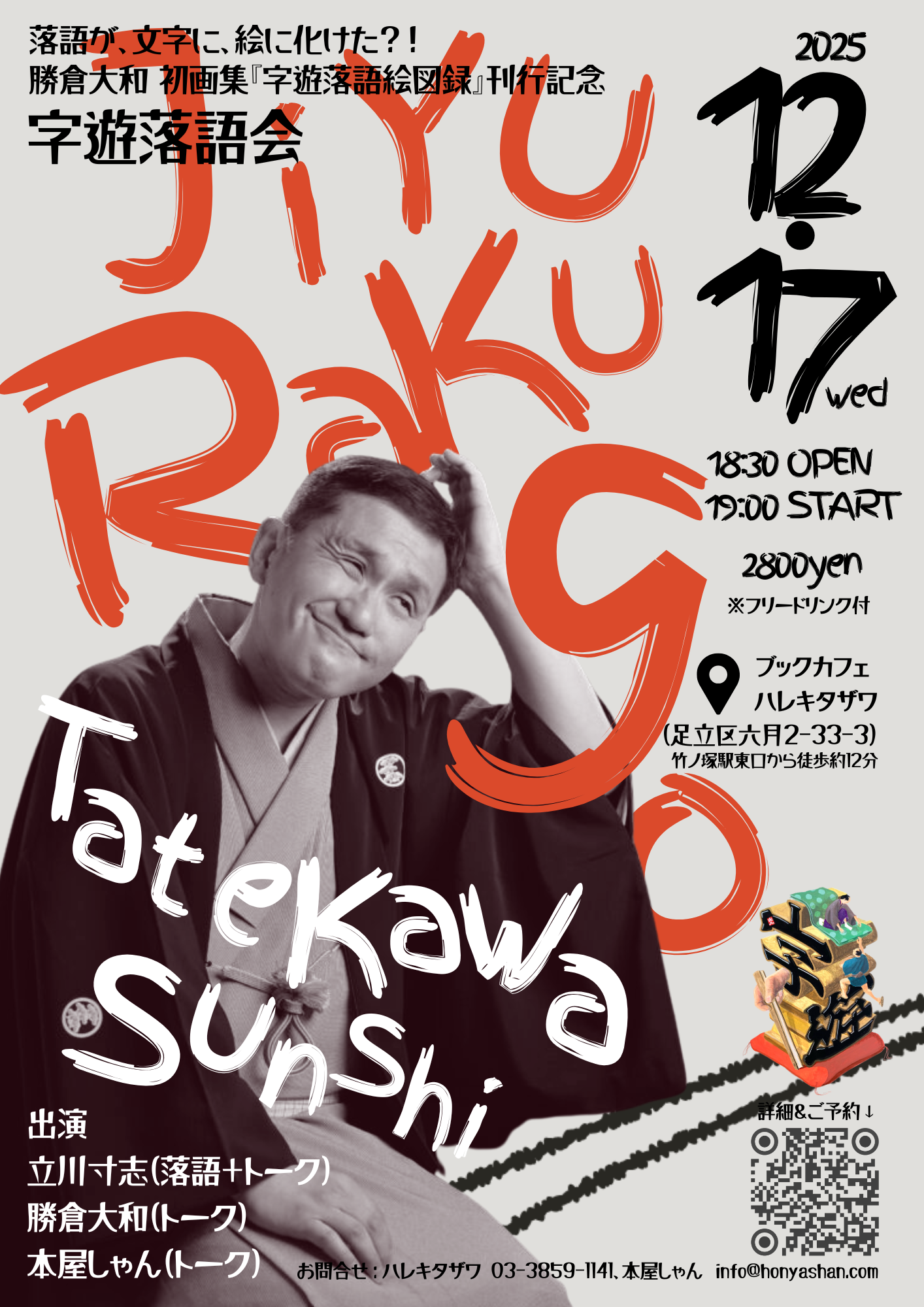 出演:立川寸志、勝倉大和、本屋しゃんー2025年12月17日(水)@ブックカフェ ハレキタザワ・竹ノ塚